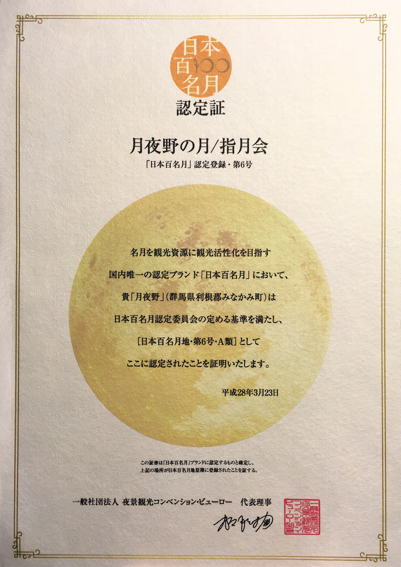日本百名月 認定証